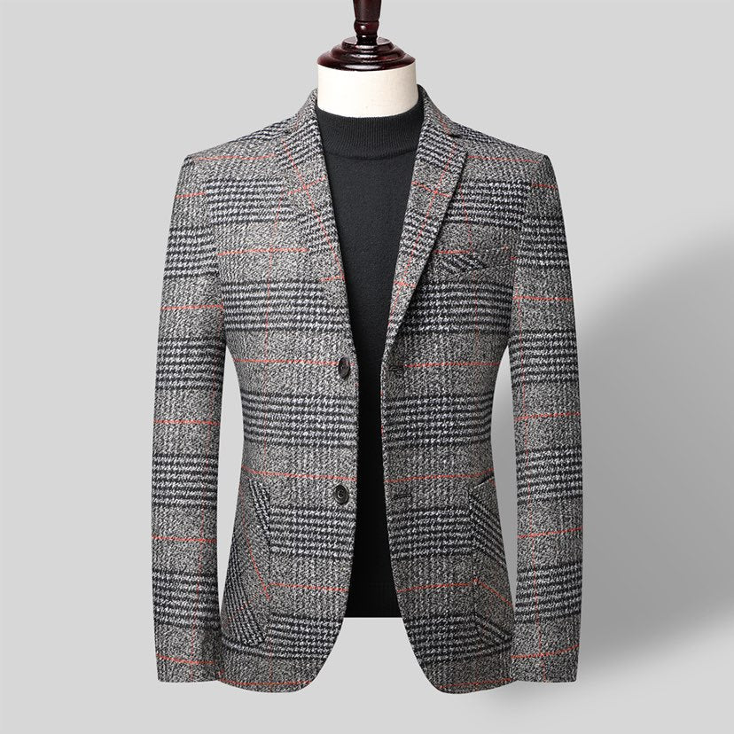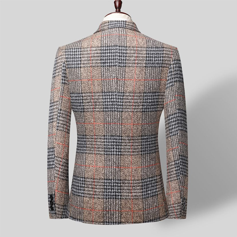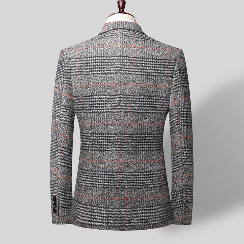 Glen Plaid Wool-Knit Coat – Business-Ready Elegance