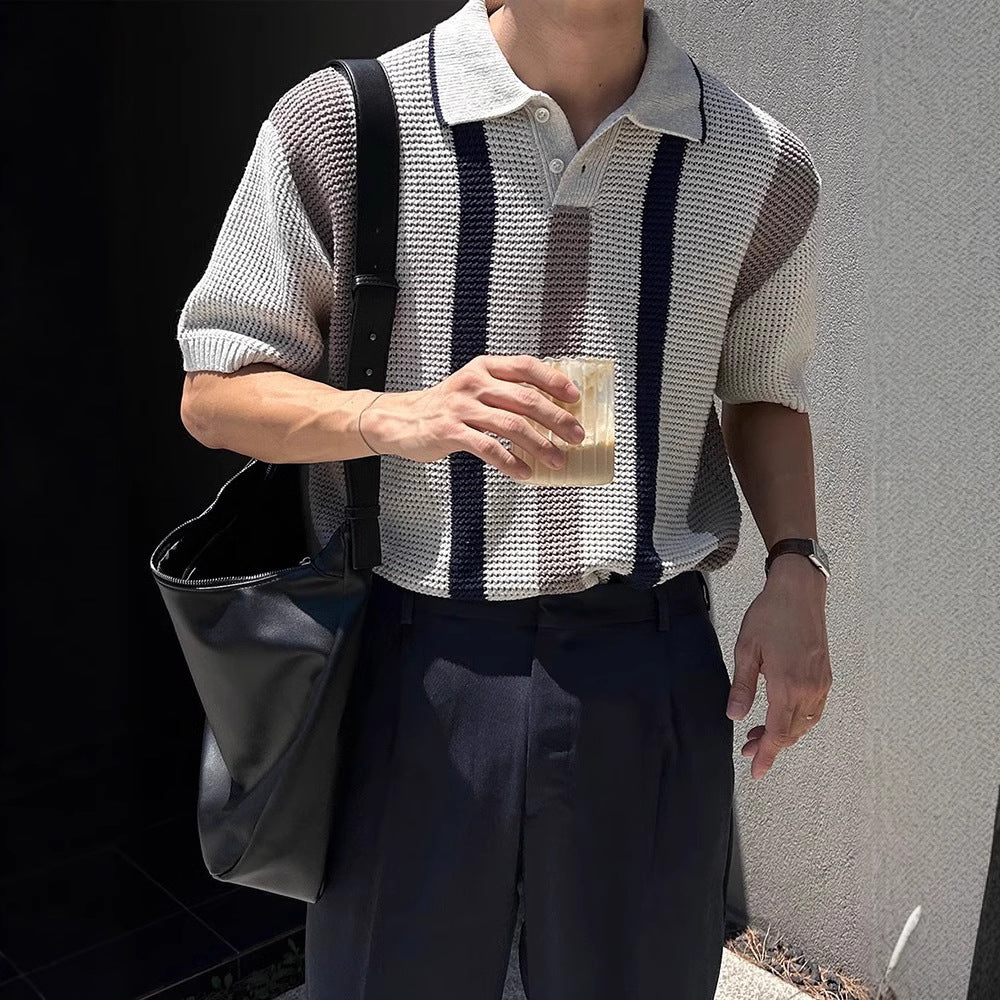 Retro Riviera Aesthetic — The contrasting white stripes and classic polo collar deliver an "Old Money" vibe that transitions perfectly from a seaside lunch to a city evening.